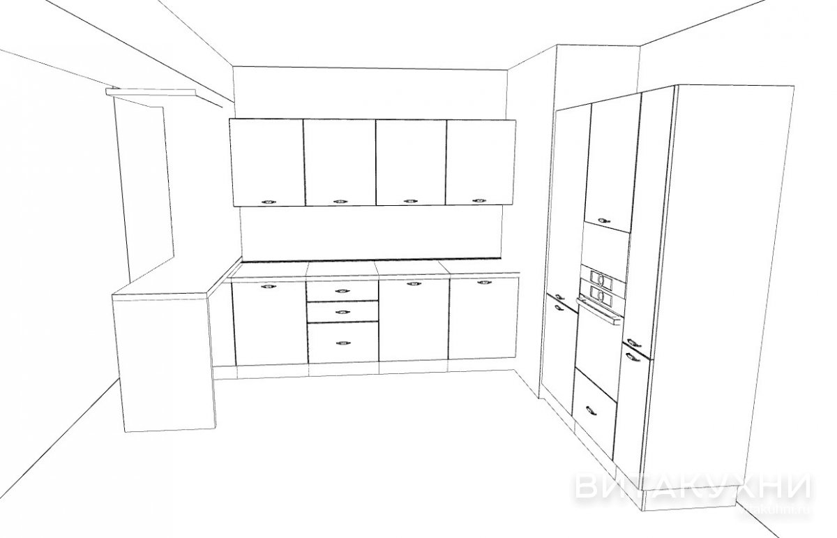 Барная стойка может выполнять роль зоны отдыха, а также служить дополнительным рабочим местом в случае необходимости. Кухня Бланко предусматривает размещение встраиваемой бытовой техники, включая холодильник и духовой шкаф. Моечное пространство кухни просторное. Столешница кухни Бланко может быть выполнены в любом цвете. Все зависит от желания заказчика.