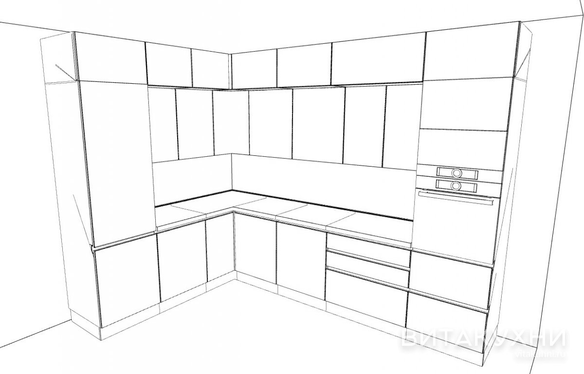 Угловая современная кухня Эдита выполнена из эмали белого цвета, без использования фрезеровки и патины, без багетов и без стеклянных элементов. Шкафы кухни Эдита выполнены под потолок, что позволяет максимально использовать все пространство. Столешница и фартук кухни Эдита выполнены под цвет натурального дерева. Кухонные шкафы и ящики вместительны. Отсутствие внешней фурнитуры практично при наличии в доме маленьких детей. Белый цвет фасадов придает воздушности помещению.