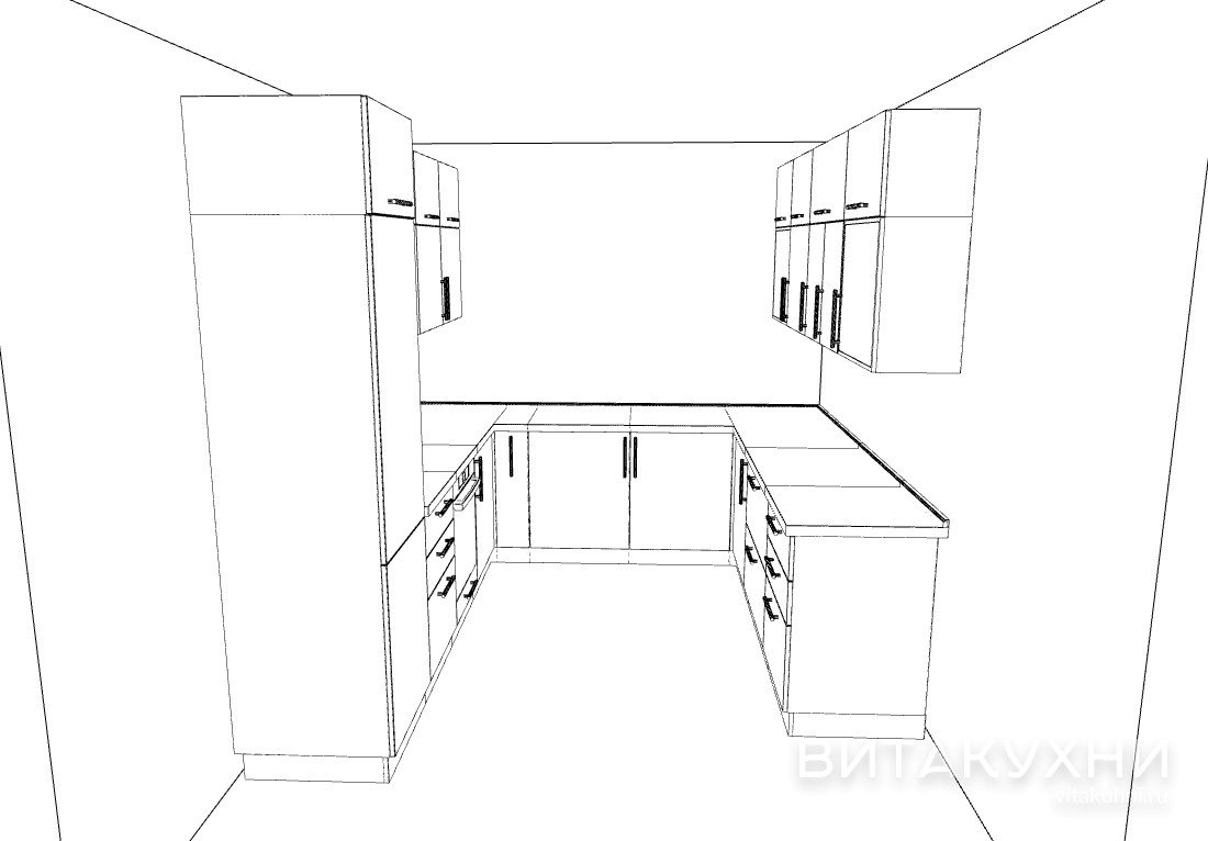 П-образная кухня Элая выполнена в неоклассическом стиле с современной фрезеровкой без патины или багетов, с использованием стеклянных элементов. Столешница кухни Элая выполнена в отличающемся цвете от фасадов гарнитура. Внешняя фурнитура кухни имеет серебристый цвет. Классическая фрезеровка подчеркивает классический стиль данного гарнитура, а умелое сочетание с современными элементами делает кухонный гарнитур Элая идеальным примером неоклассики. Верхние ярусы кухни Элая имеют несколько шкафчиков со стеклянными элементами, выполненными в классическом английском стиле. Внутри можно разместить свою любимую посуду или бокалы. Проектом предусматривается подсветка гарнитура, которая будет выступать в качестве дополнительного декора.