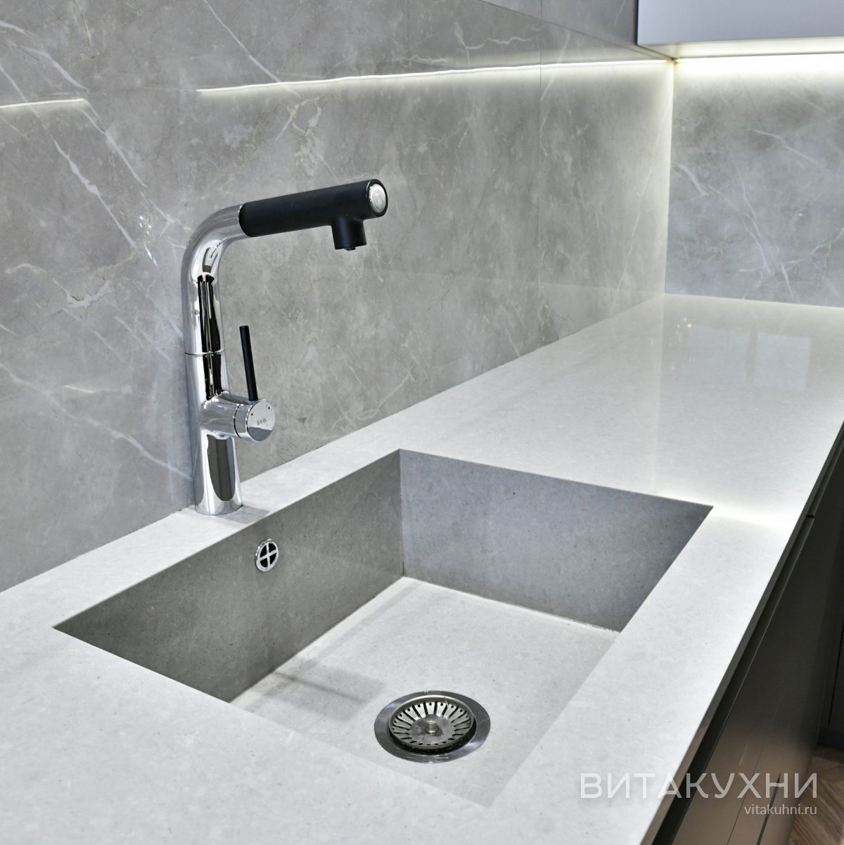 • В сборку входит установку модулей, столешницы, стеновой панели, цоколя, карниза, багета, подключение подсветки (без проводки электрики по помещению), регулировка фасадов, установка мойки и смесителя(без врезок), подключение к воде (без проводки по помещению)