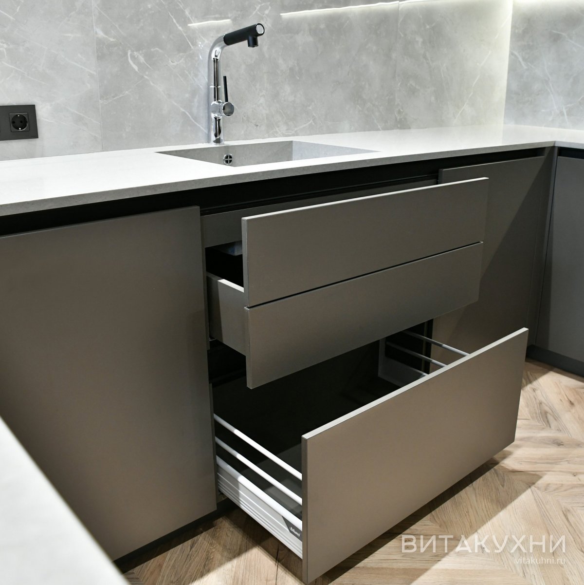 • Особенности: матовые, с ручкой гола, без ручек, со встроенным холодильником, с подсветкой