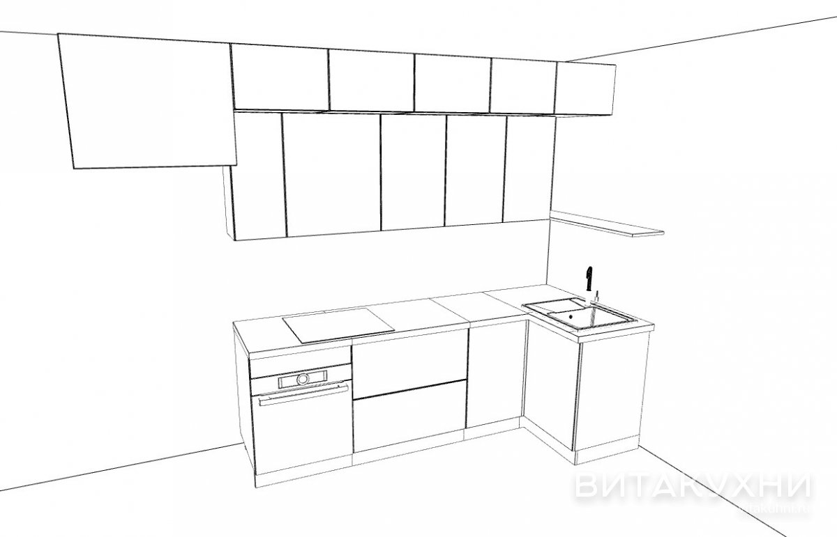 Кухня Оникс небольшая и будет уместно смотреться в кухне-гостиной или в апартаментах. Над пространством для холодильника есть большой шкаф для хранения различных аксессуаров. Кухня Оникс может быть декорирована стильными предметами из стали или из натуральных материалов. Справа над моечной зоной расположена открытая полка для хранения посуды. Характеристики кухни Оникс могут быть изменены по желанию заказчика.