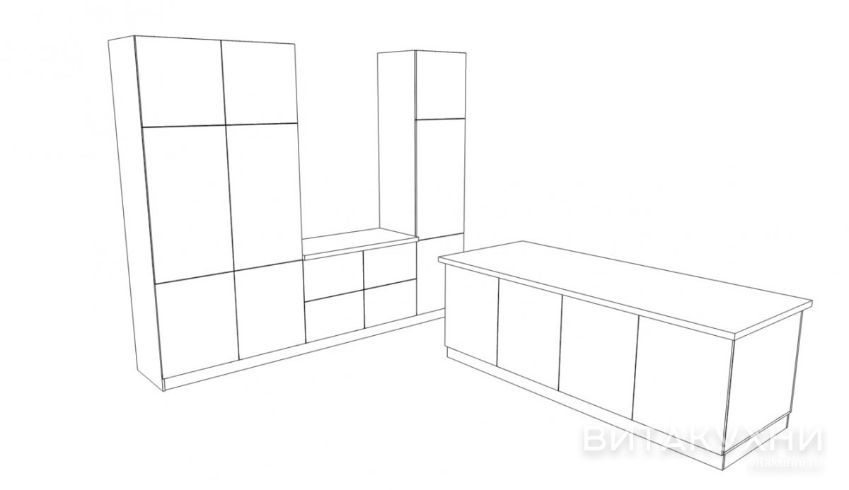 Современная прямая кухня Виен изготовлена их МДФ коричневого цвета, без фрезеровки, без использования багетов, без патины и без использования стеклянных элементов. Кухня Виен имеет отдельно стоящий остров, который может быть использован как в качестве рабочей зоны, так и зоны отдыха, например, чаепития. Остров предусматривает размещение встраиваемой варочной и моечной панелей, а остальной кухонный гарнитур может быть оснащен большим холодильником, духовым шкафом, посудомоечной машиной и так далее.