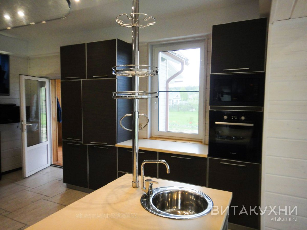 Особенности проекта кухни Виен позволяют разместить ее как у окна для освещения дневным светом, так и у стены, максимально используя пространство для ваших дизайнерских решений. Коричневый благородный цвет фасадов кухни Виен практичен, в внешняя фурнитура серебристого цвета создает дополнительное украшение кухонного гарнитура. Размеры кухни Виен и расположение острова могут быть изменены по желанию заказчика.