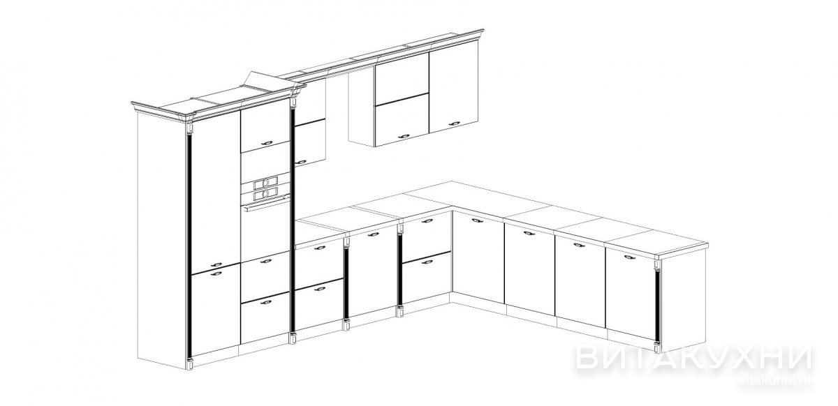 Изящный белый гарнитур в классическом стиле Дэфо привнесет торжественную обстановку в будничную обыденность. С такой мебелью ваша кухня каждый день будет нарядной и праздничной. Матовые белые фасады выполнены из МДФ, предусмотрен встроенный холодильник. Верхние модули присутствуют только на одной стороне углового гарнитура, но при необходимости они могут быть добавлены симметрично.