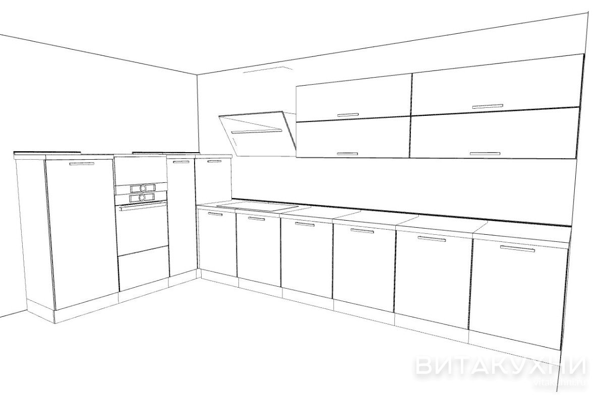 Угловой кухонный гарнитур Дриада с глухими фасадами без стекла в стиле минимализм