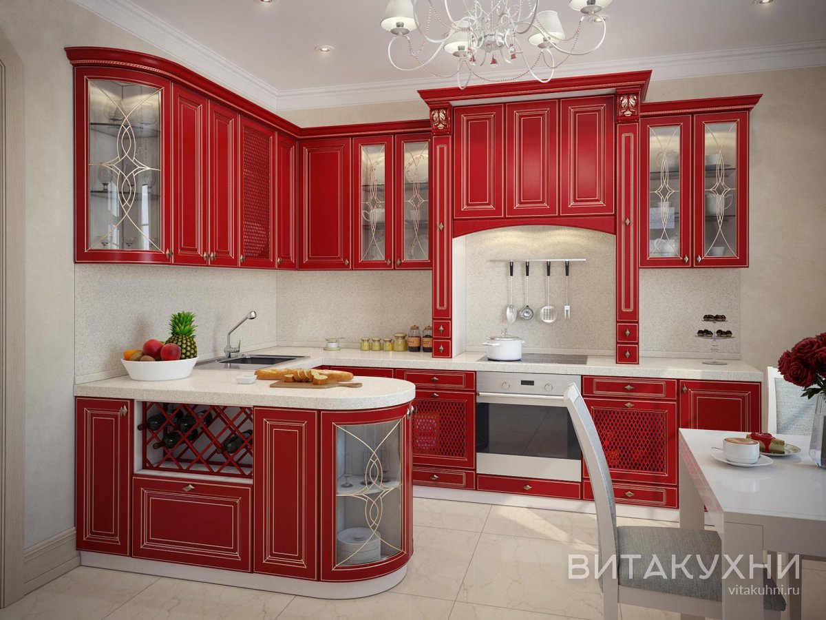 Сочный красный гарнитур эмаль Дублин с фрезеровкой, патиной и багетами