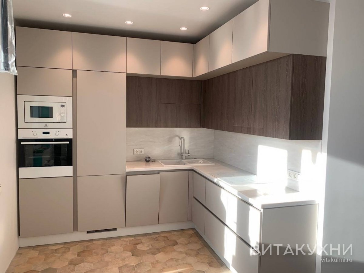 Кухонный гарнитур с фасадами из МДФ бежево-коричневом цвете