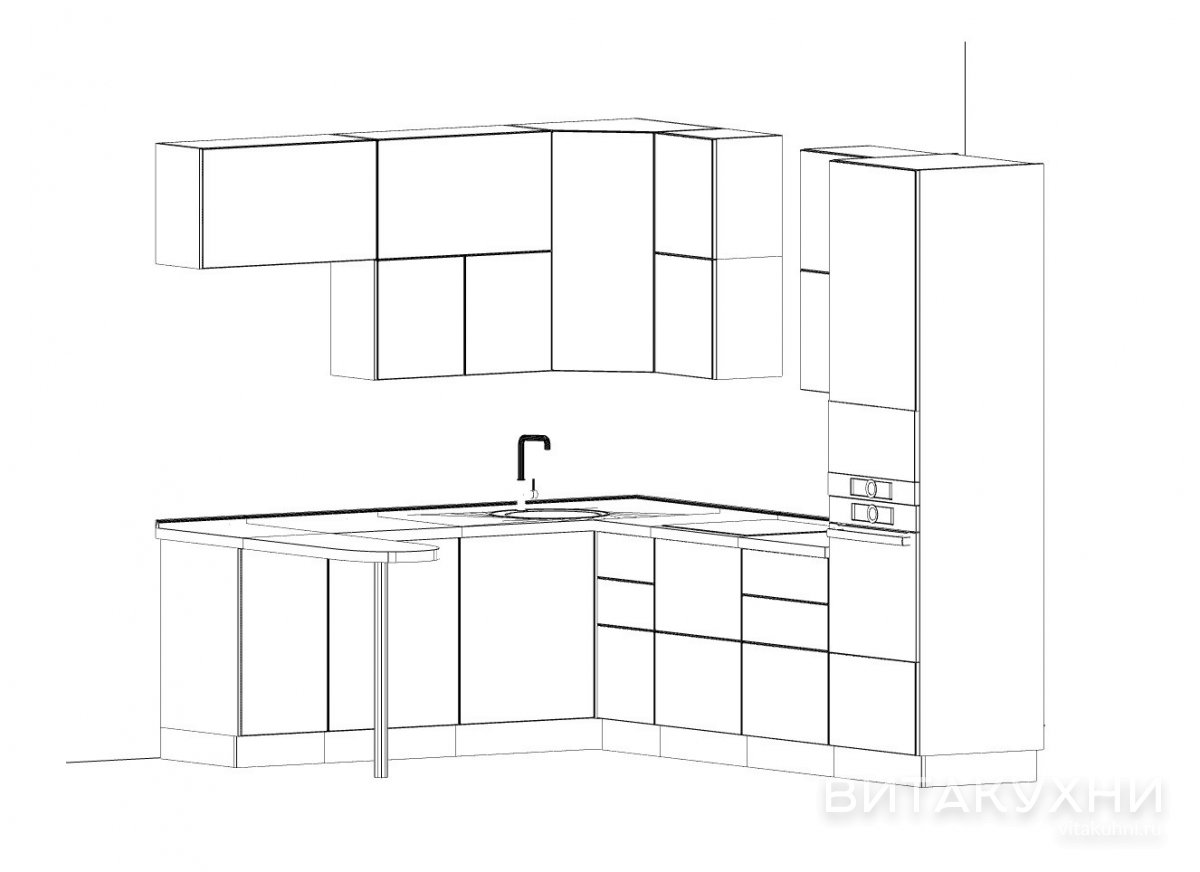 Угловая кухня Концепт с гладкими матовыми фасадами выполнена из ЛДСП. Это бюджетный материал, позволяющий создавать красивые современные гарнитуры по доступной цене. Если вы мечтали о кухне цвета бетон с деревом, но при этом хотели купить ее недорого, обратите внимание на представленную здесь модель. Гладкие фасады приятны на ощупь и при правильном уходе прослужат очень долго.
