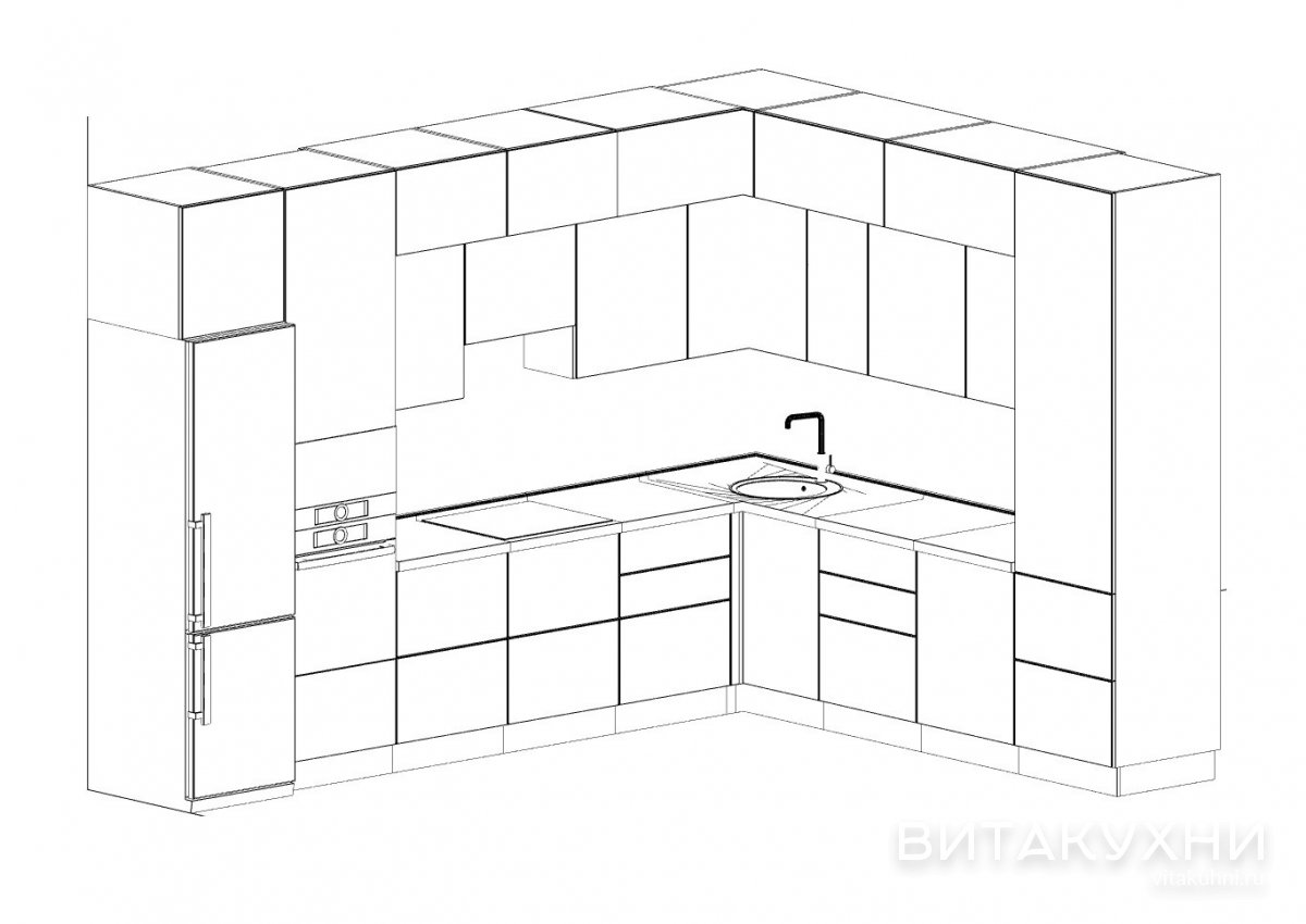 Современная матовая кухня Кристалл, с гладкими фасадами, с ручками гола