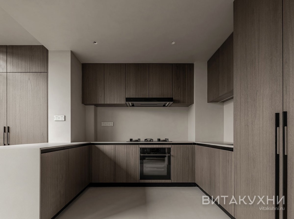 Современная П-образная кухня Ладос с гладкими матовыми фасадами