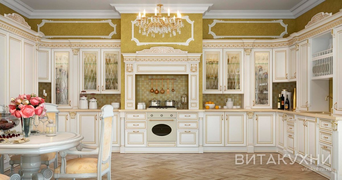 Роскошная белая кухня Лондон так же прекрасна, как столица туманного альбиона. Этот кухонный гарнитур перенесет вас в Викторианскую эпоху с ее роскошью и эклектичностью. В дизайне присутствует лепнина, багеты, классическая фрезеровка, патина, стеклянные витражи. Зона приготовления пищи стилизована под старинный очаг, что создает особенную, винтажную атмосферу на вашей кухне.