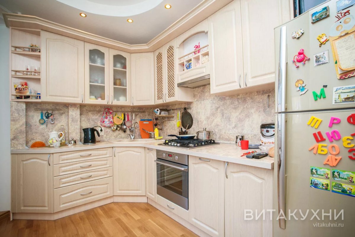 Угловой классический гарнитур Любимая с фасадами в цвете беж с фрезеровкой