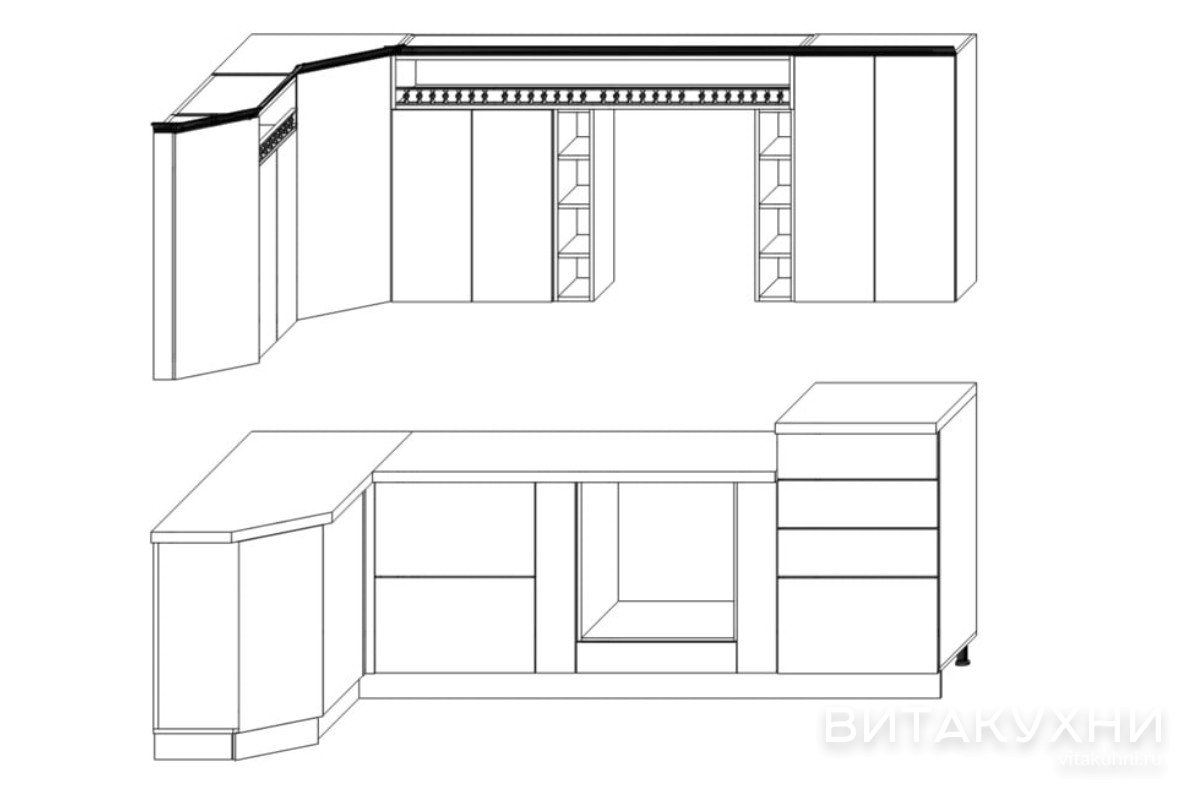 Угловая кухня Шарлотта выполнена в классическом стиле с фасадами из массива дерева. Кухня имеет фрезеровку в классическом стиле, а также украшена багетами и стеклянными элементами. Угловая кухня Шарлотта – это благородство, стиль и красота. Кухня Шарлотта оснащена большим количеством ящиков и шкафов, что будет функционально и практично для будущего хозяина этого гарнитура. Стеклянные элементы шкафов придают шарма кухне Шарлотта. Здесь умело можно разместить любимую посуду или любые элементы декора. Открытое пространство на верхнем ярусе кухни также может быть задействовано под декорирование пространства.