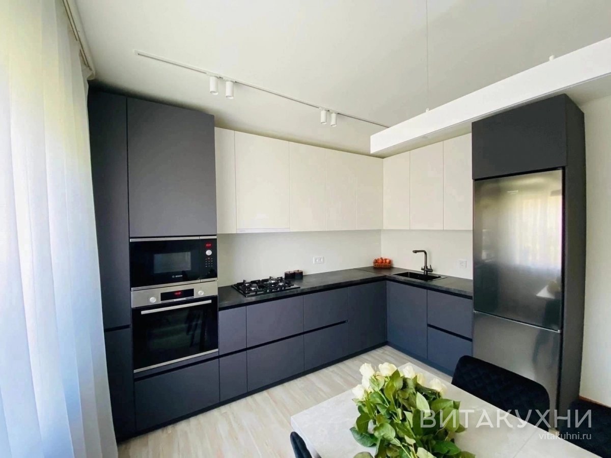 Двухцветная кухня Спаркс, в современном стиле, с гладкими фасадами