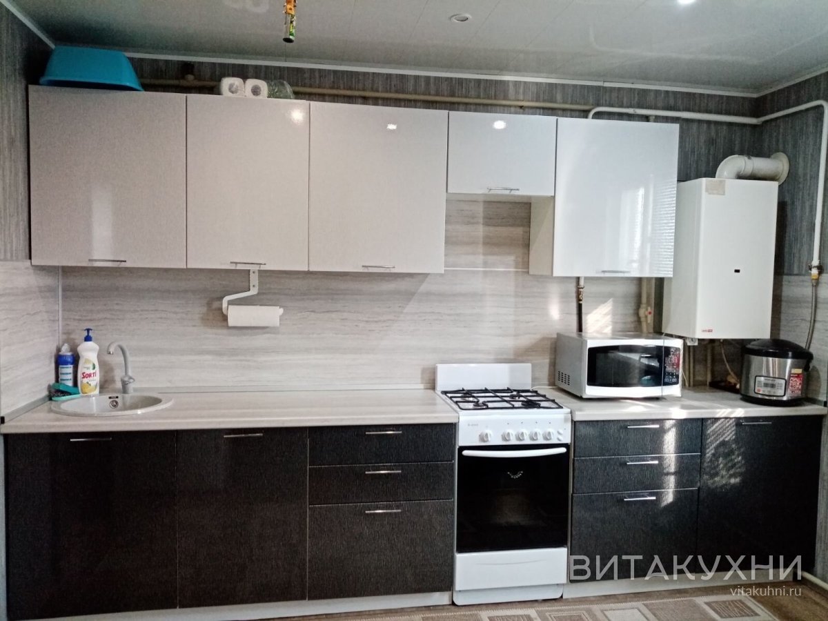 Рассчитаем стоимость кухни Валерия-М-Белый металлик/Черный металлик дождь 01 по вашим размерам в течение 20 минут