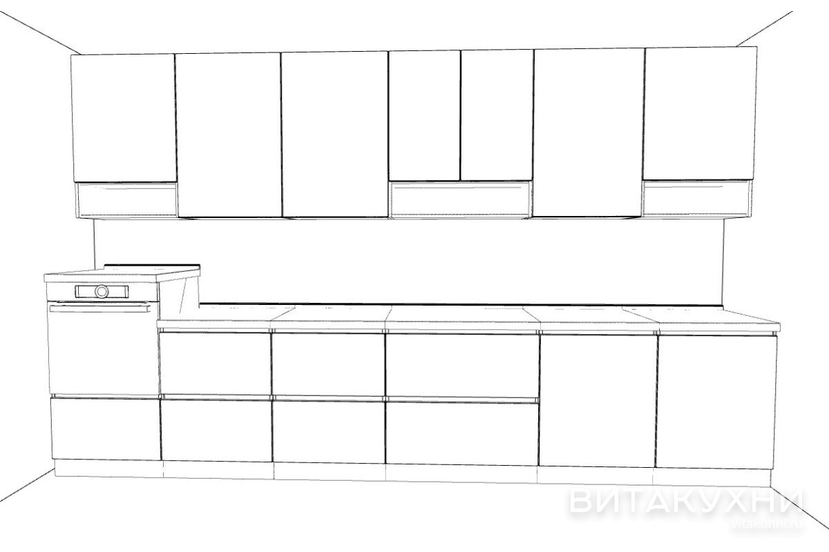 На втором ярусе кухня Вега имеет открытые полки, которые могут использоваться для размещения элементов декора. Стеклянные элементы сделаны из матового стекла, а внутренняя подсветка в этих шкафчиках может стать дополнительным элементом декора кухни Вега. Внешняя фурнитура кухни Вега окрашена в бронзовый цвет. Характеристики кухни Вега могут быть изменены по желанию заказчика.