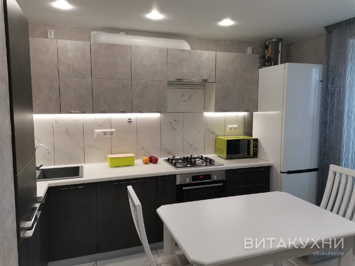 Угловая современная кухня Вирс в сером и черном цвете из ЛДСП