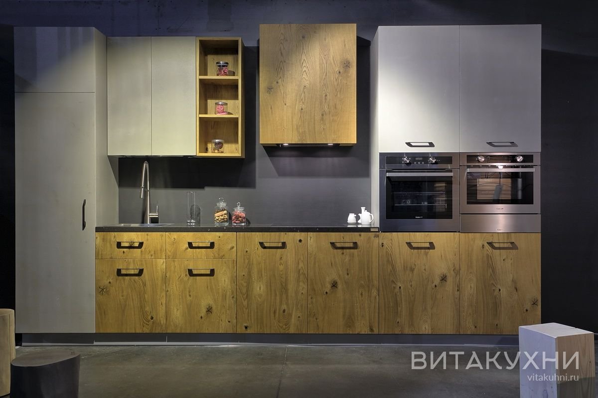 Прямая двухцветная кухня Злата, без фрезеровки, светлое дерево белый цвет