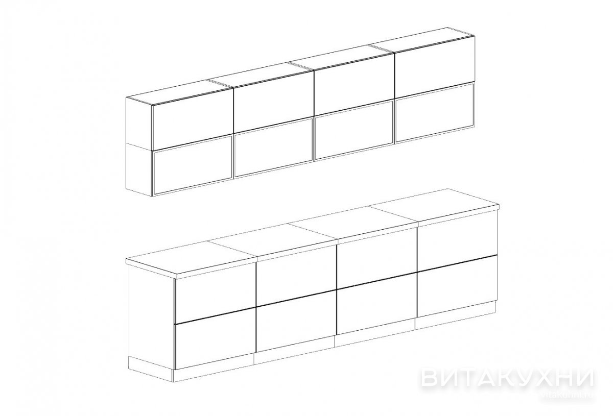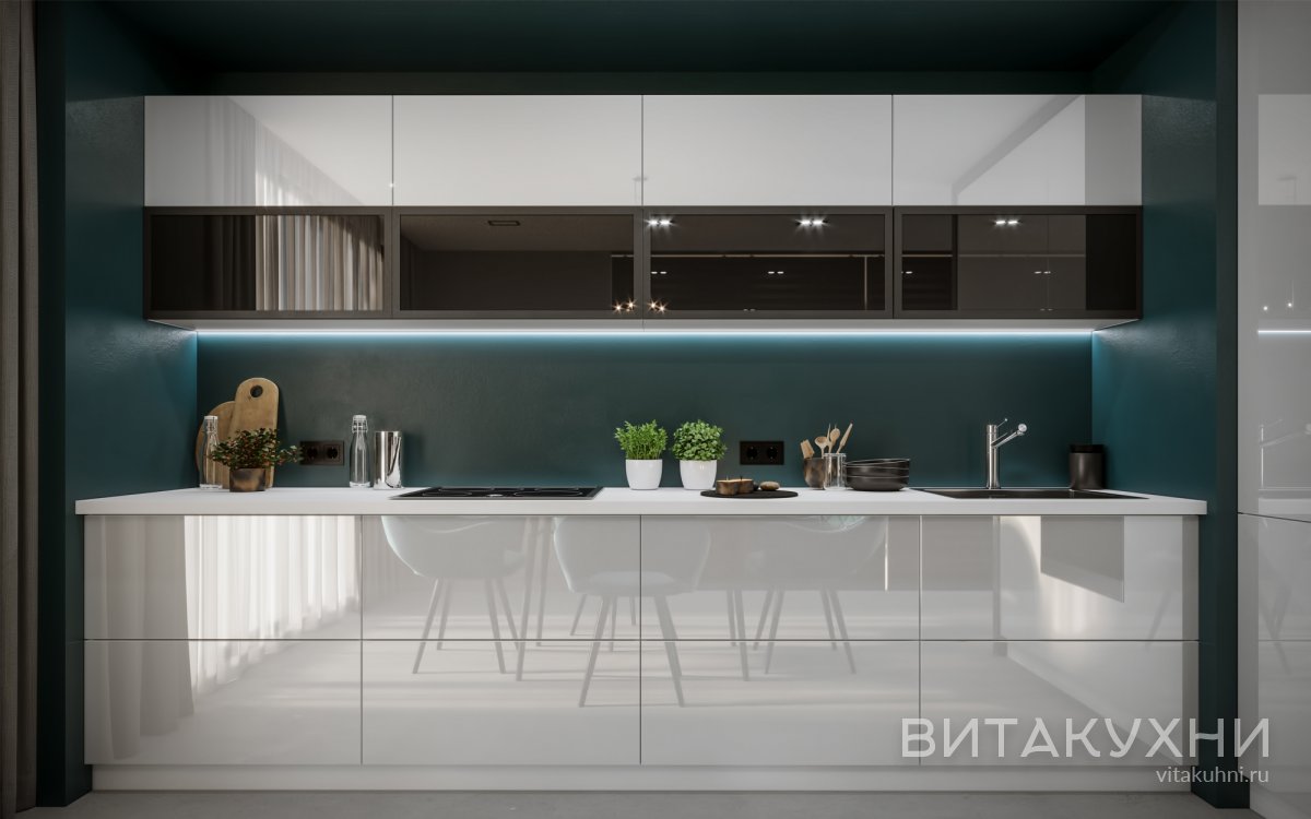 Прямая глянцевая кухня Зодиак с гладкими фасадами, без ручек