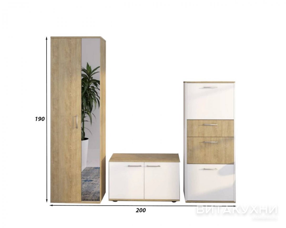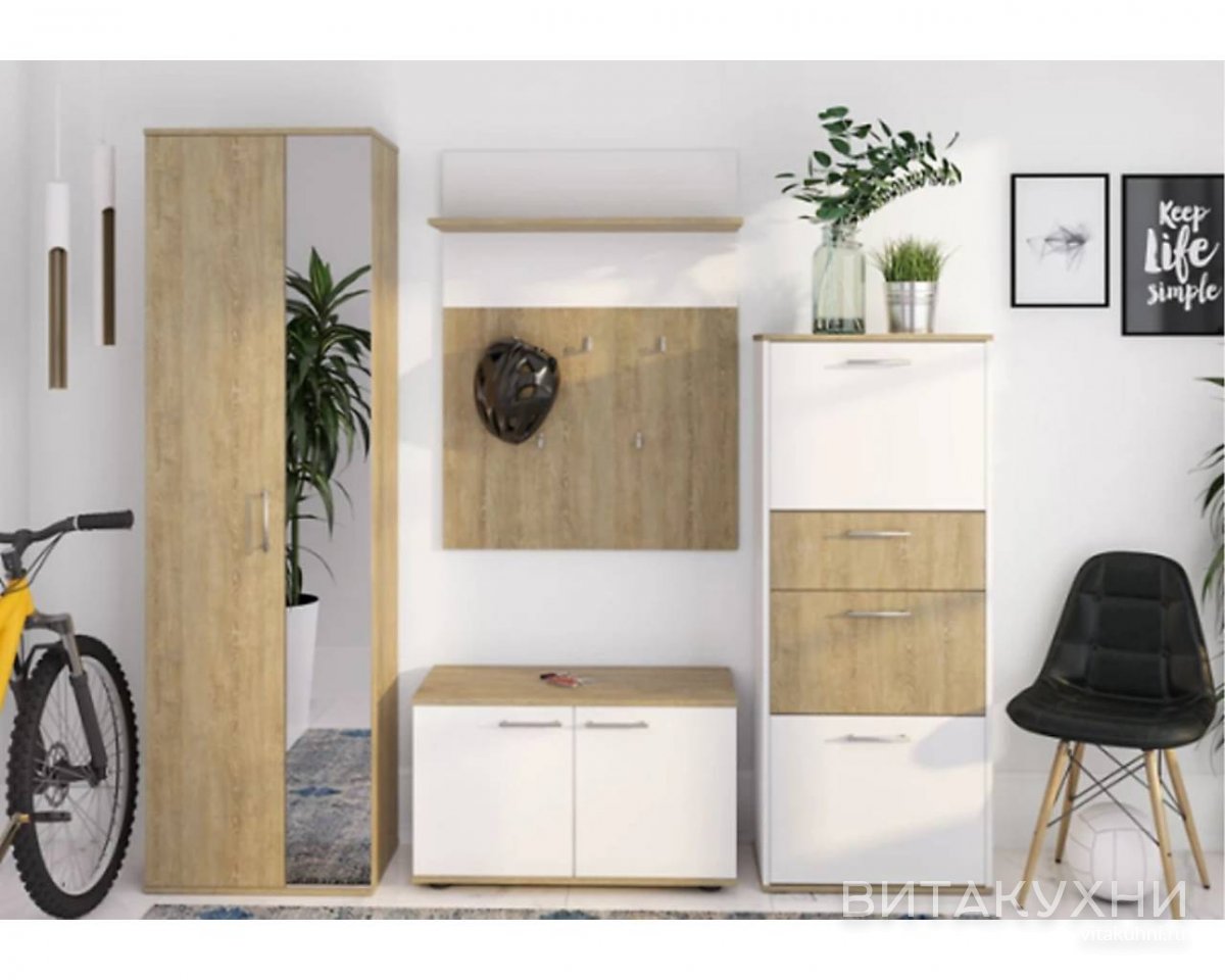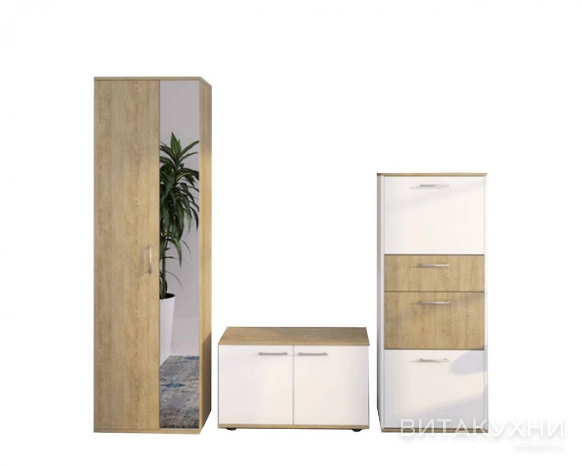 Прихожая Альфа-3 стильный и функциональный набор мебели в сочетании белого цвета и оттенка дерева. Вместительный шкаф с зеркалом на одной из створок обеспечивает достаточно места для верхней одежды. Высокая тумба для обуви позволяет аккуратно разместить Вашу обувь, а маленькая тумба - хранить аксессуары и другие мелочи. Вся мебель изготовлена из высококачественных материалов и имеет современный дизайн, который идеально впишется в любой интерьер. Купить по выгодной цене Прихожую Альфа-3 приглашаем в наш магазин.