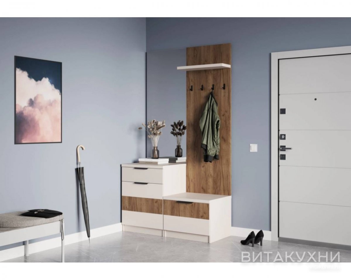 Прихожая Эстенсон-1 сочетает в себе компактность, функциональность и стильный дизайн, что позволит максимально эффективно использовать пространство и создать уютную атмосферу. Главным элементом набора является тумба с ящиками и полкой для обуви. Она выполнена из высококачественного материала, который гарантирует прочность и долговечность мебели. Благодаря белому цвету, тумба визуально расширяет пространство и делает прихожую светлее. Вешалка с крючками и зеркалом на фасаде позволит аккуратно разместить верхнюю одежду и оценить свой образ перед выходом из дома. Купить Прихожую Эстенсон-1 по выгодной цене приглашаем в наш интернет-магазин.
