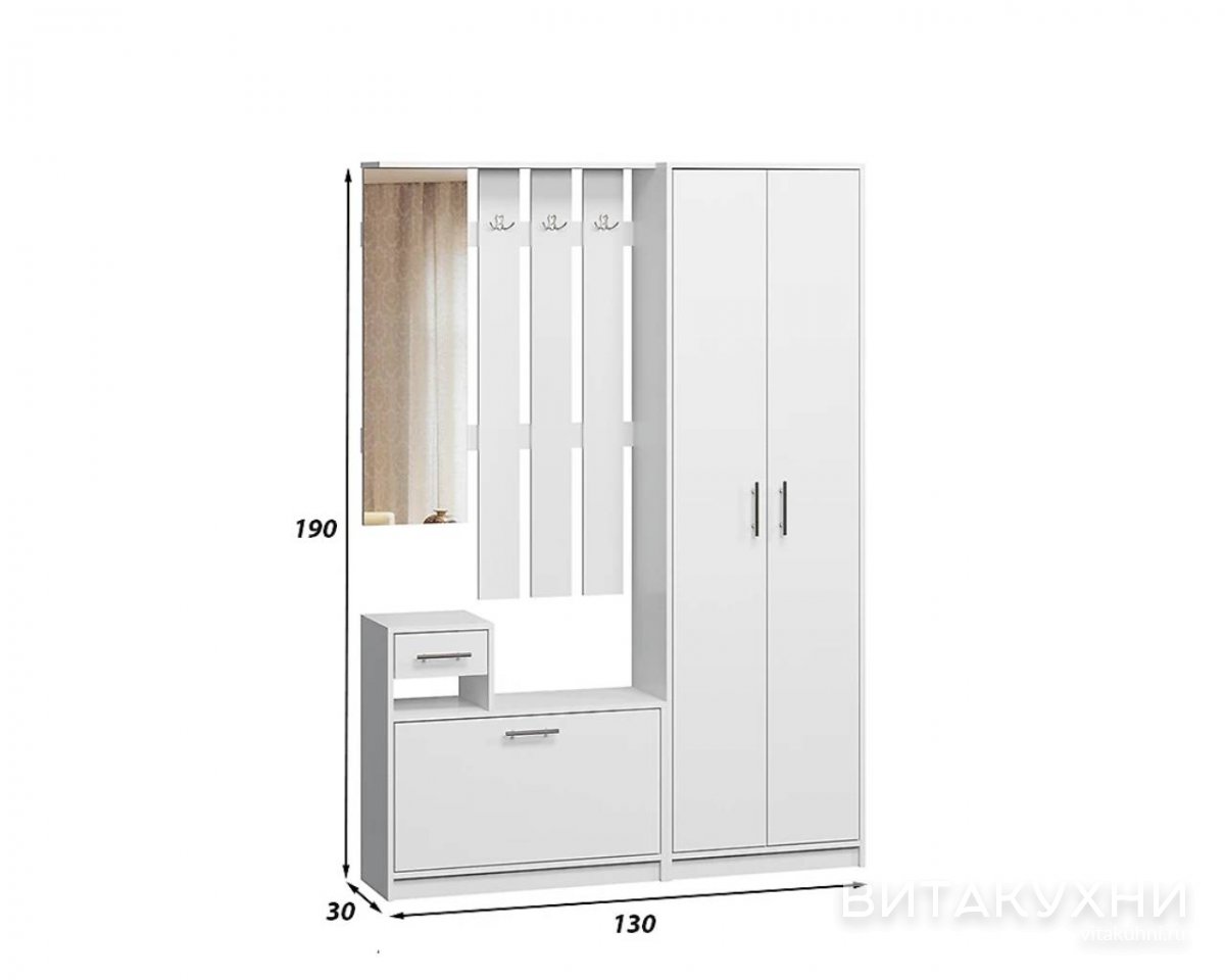 В коридор, Для одежды, Со шкафом, Готовые, Закрытые, Напольные, Белые, Светлые