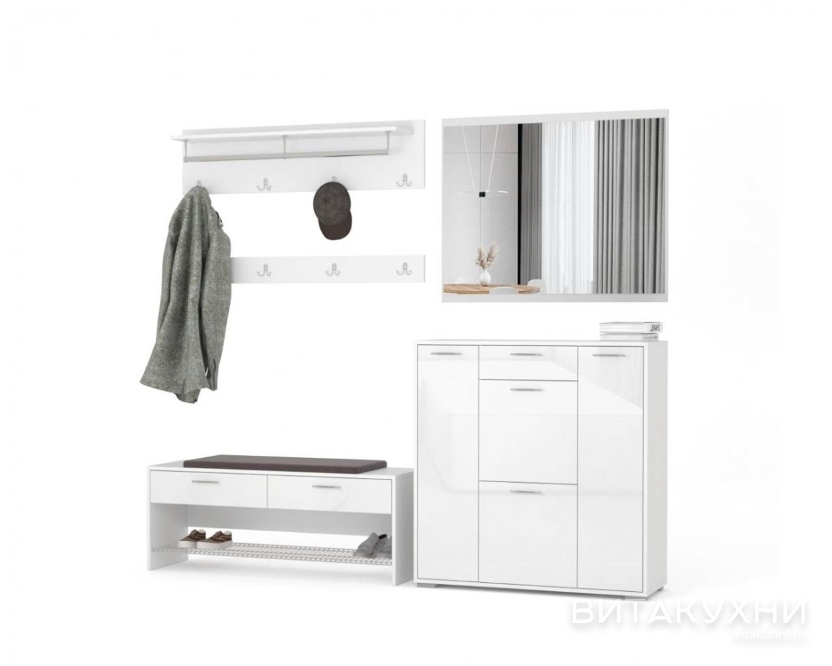 В коридор, Модульные, Без шкафа, Готовые, Напольные, Современные, Белые, Глянцевые