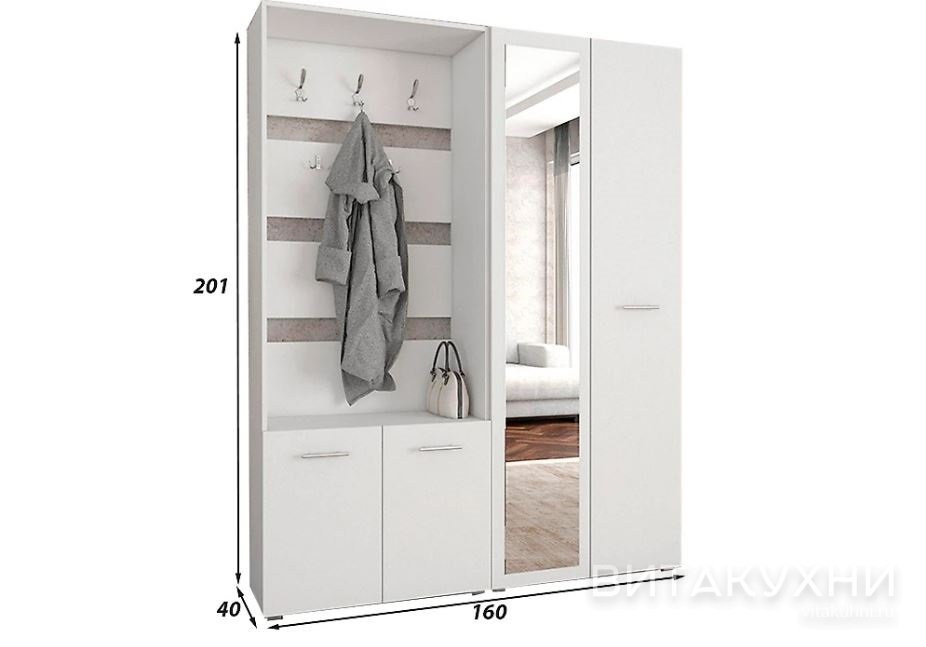 В коридор, Для одежды, Со шкафом, Готовые, Напольные, Белые, Светлые, Эконом