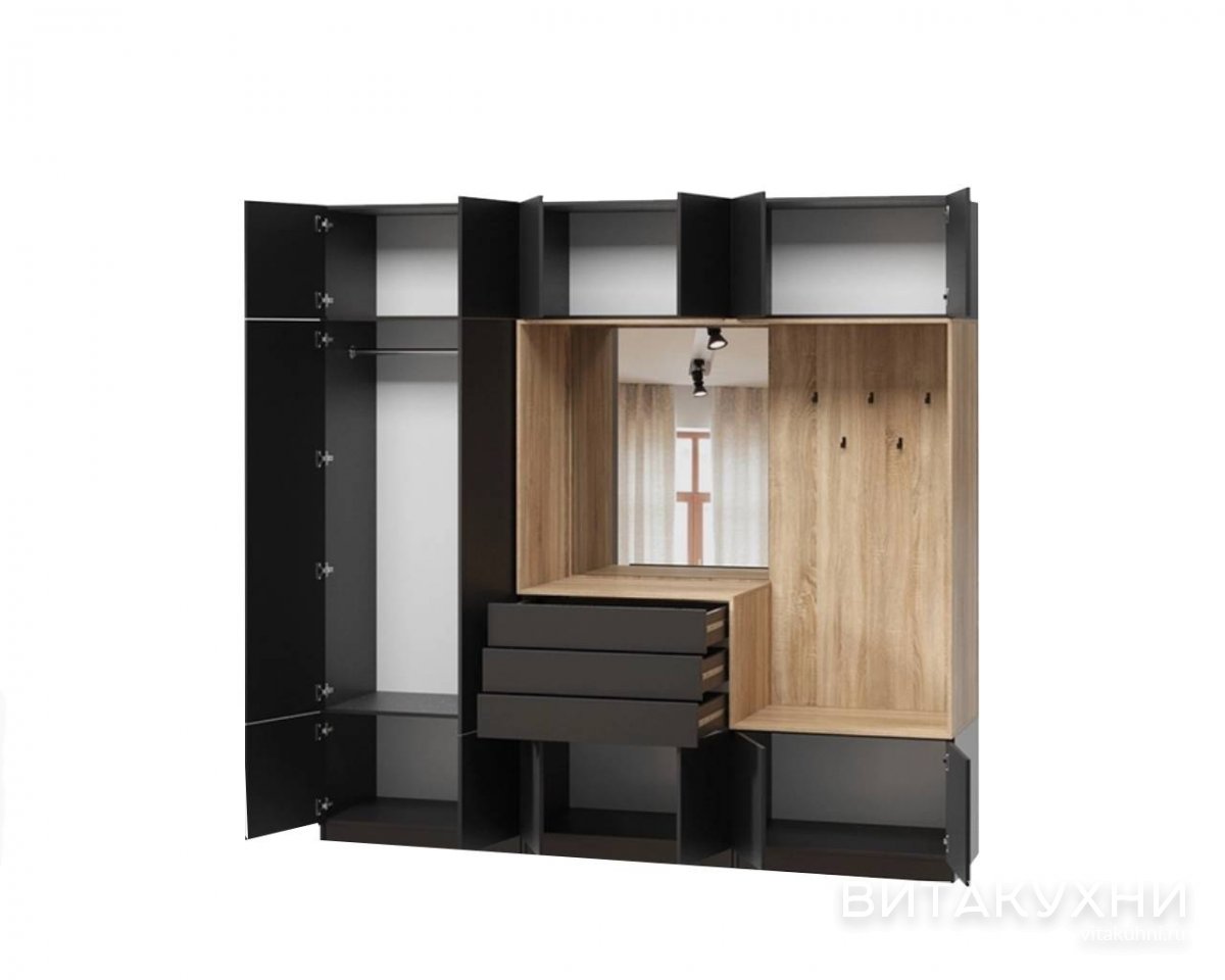 Прихожая Меса - это идеальное решение для тех, кто ищет функциональную мебель для своего коридора. Ее прямые линии и современный дизайн позволяют легко вписать ее в любой интерьер. Модель оснащена шкафом, закрытыми полками и антресолью, что позволяет хранить все необходимые вещи в одном месте. Большие и высокие габариты делают ее идеальной для использования в лофт-стиле. Древесный цвет и темный оттенок придают ей элегантный вид. Купить прихожую Меса можно в нашем интернет-магазине.
