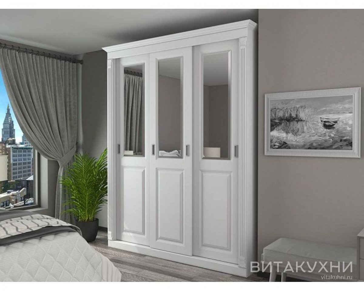 Шкаф-купе Афина 31 - это стильное и функциональное решение для вашей спальни или гостиной. Сочетание белого цвета и зеркальных вставок придают ему светлый и воздушный вид, а классический дизайн подойдет к любому интерьеру. Материал фасада из МДФ обеспечивает прочность и долговечность изделия. Шкаф оснащен 3 дверьми с фрезеровкой и 4 ручками, что облегчает и упрощает его использование. С таким шкафом вы сможете организовать пространство, сохраняя порядок и создавая уютную атмосферу. Купить Шкаф-купе Афина 31 по привлекательной цене вы можете в нашем интернет-магазине.