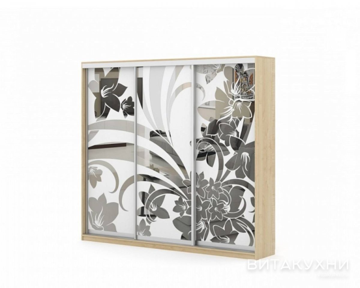 Шкаф-купе Композиция 61 - это функциональная и изящная модель с красивым пескоструйным рисунком на зеркальных фасадах. Шкаф-купе имеет просторное внутреннее наполнение, которое позволяет разместить большое количество одежды, обуви, аксессуаров и других предметов домашнего обихода. Раздвижные двери помогут сэкономить полезное пространство и обеспечить легкий доступ к содержимому. Приобрести Шкаф-купе Композиция 61 по привлекательной цене приглашаем в наш интернет магазин.