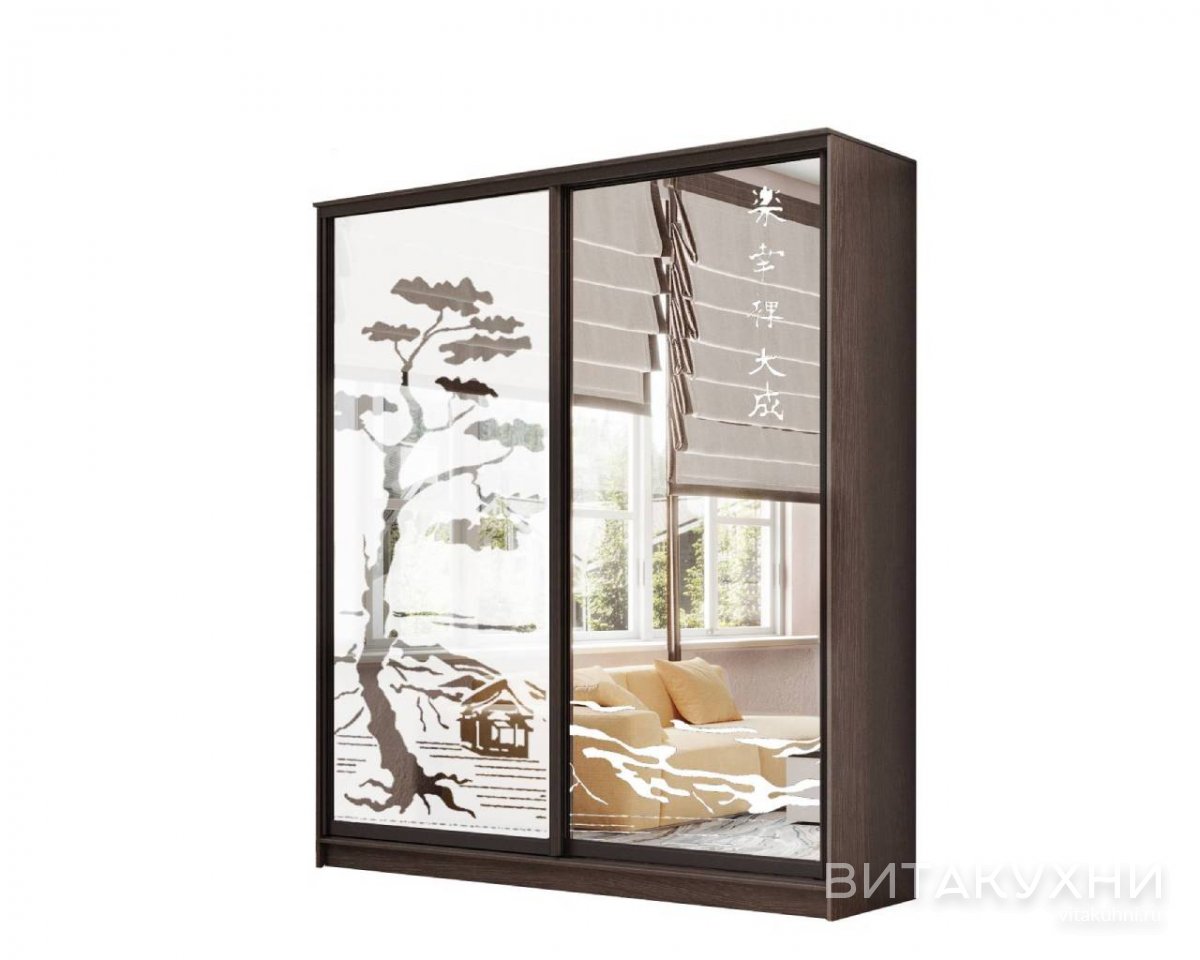 Шкаф-купе Лагуна-23 - это стильное и функциональное решение для вашего интерьера. Особенности этого шкафа - зеркальные двери с пескоструйным рисунком. Стандартное наполнение включает в себя отсек под платья с полкой. Размеры шкафа позволяют разместить его в любом помещении, а темный венге цвет придаст интерьеру изысканности. Купить качественный Шкаф-купе Лагуна-23 можно в нашем интернет-магазине.