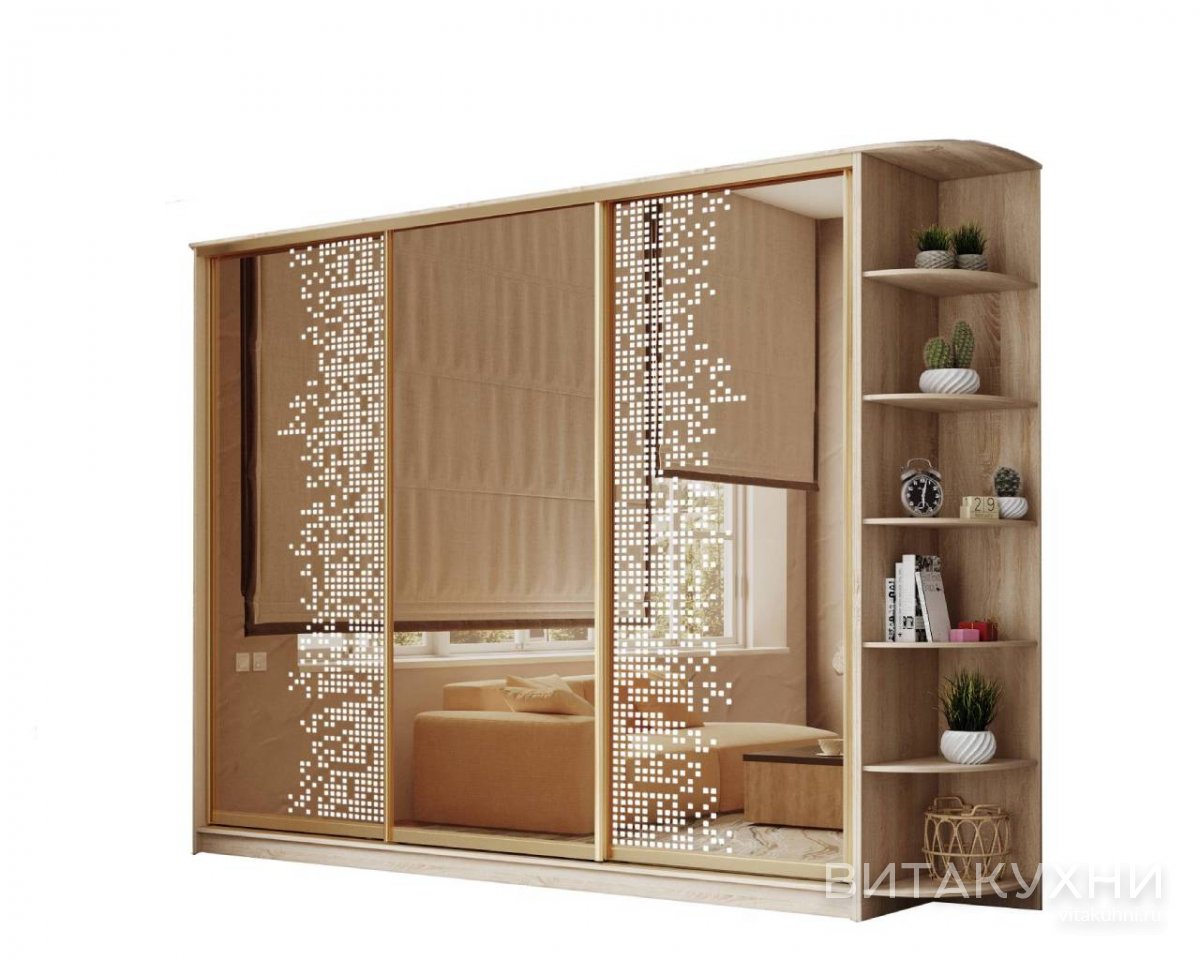 Шкаф-купе Лагуна-47 классическая модель, которая будет отличным выбором для просторной гостиной или спальни. Светлые оттенки и древесные мотивы создают уютную атмосферу в комнате. Широкие зеркальные двери добавляют пространства и света, а угловой элемент позволяет оптимально использовать угловое пространство. Материал фасада - зеркало с пескоструйным узором, что придает шкафу изысканный вид. Корпус шкафа выполнен из прочного материала, обеспечивающего долгий срок службы изделия. Заказать Шкаф-купе Лагуна-47 приглашаем в наш интернет-магазин.