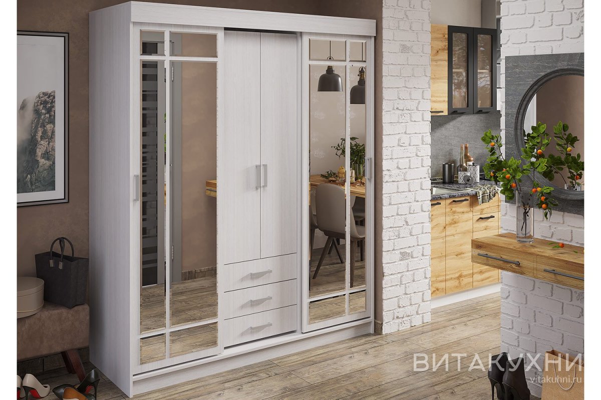 Шкаф-купе Лидер 1 отличается практичной конструкцией, высокой функциональностью и станет отличным выбором для небольшой прихожей. Раздвижные двери сэкономят полезную площадь, а центральная распашная часть поможет разместить аксессуары и одежду. Три выдвижных ящика будет отличным дополнением для размещения вещей. Отличным бонусом является широкая размерная сетка и большая палитра. Покупатели, ищущие стильную и прочную мебель, оценят этот шкаф за его качество и удобство использования.