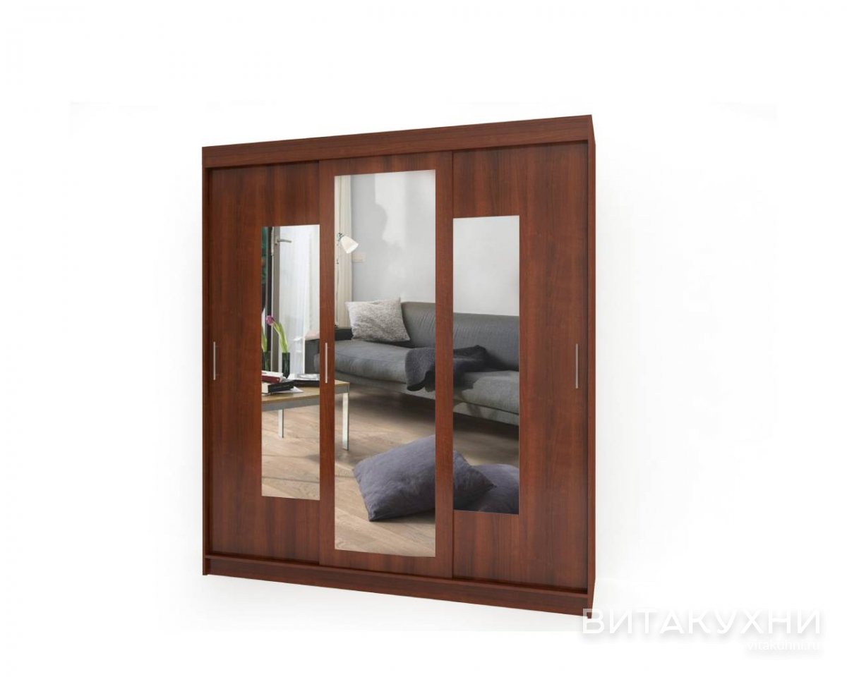 Шкаф-купе Миллениум-6-03 не останется не замеченным в интерьере вашей гостиной или коридора. Зеркальные накладки и правильная геометрическая форма делают мебель действительно особенной. За тремя створками находится богатое внутреннее пространство: штанга с полкой под шляпы и отсек с полками, так же вы можете выбрать компоновку сами. Заказать Шкаф-купе Миллениум-6-03 можно у нас в интернет-магазине.