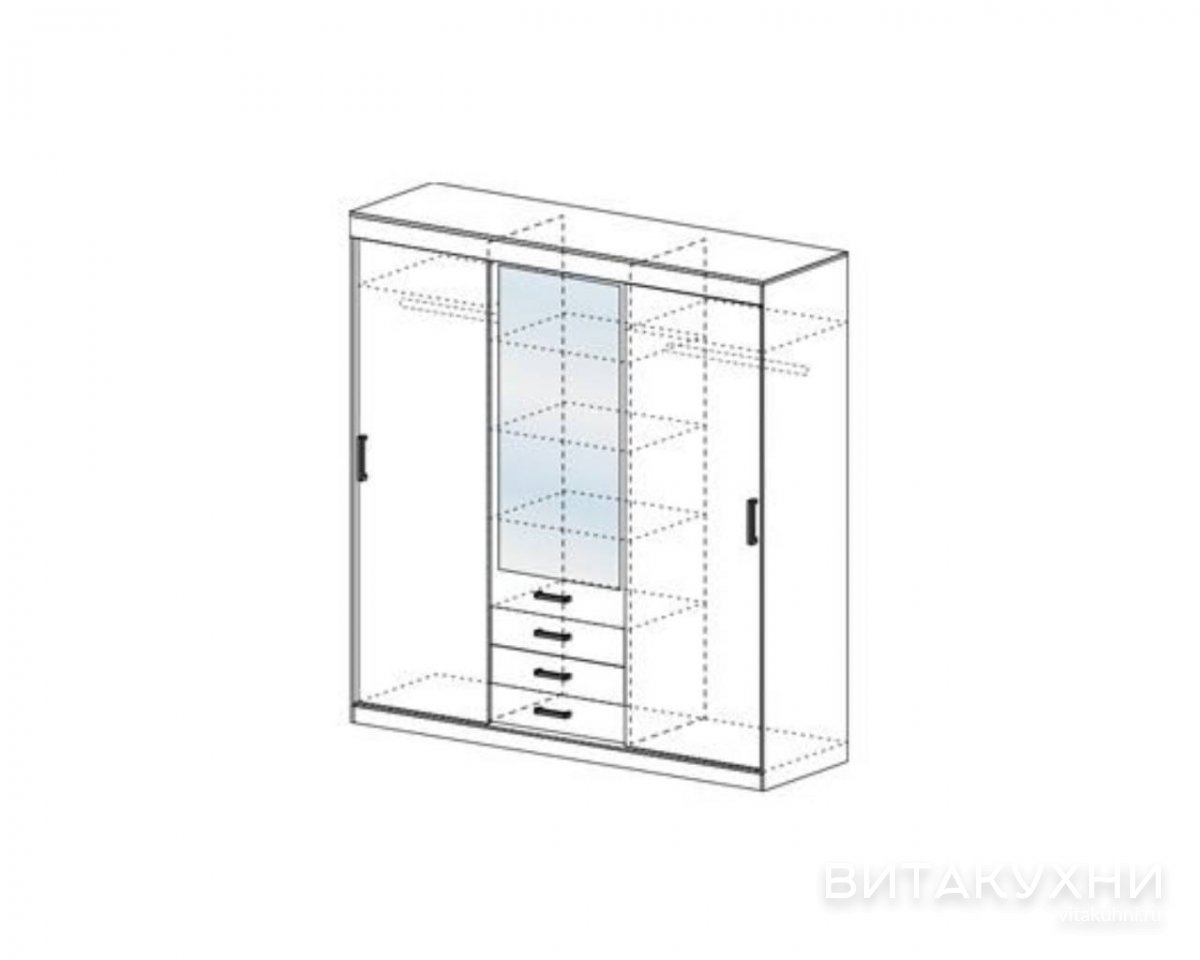 Шкаф-купе Сицилия представляет собой полноценный комплект мебели. В его комплектацию вошли два просторных отдела со штангой. По центру прекрасно вписались четыре выдвижных ящика. Благодаря присутствию разнообразных отделов в одном шкафу, Вы можете хранить большой объём различных вещей в одном месте. Заказать Шкаф-купе Сицилия по привлекательной цене приглашаем в наш интернет-магазин.