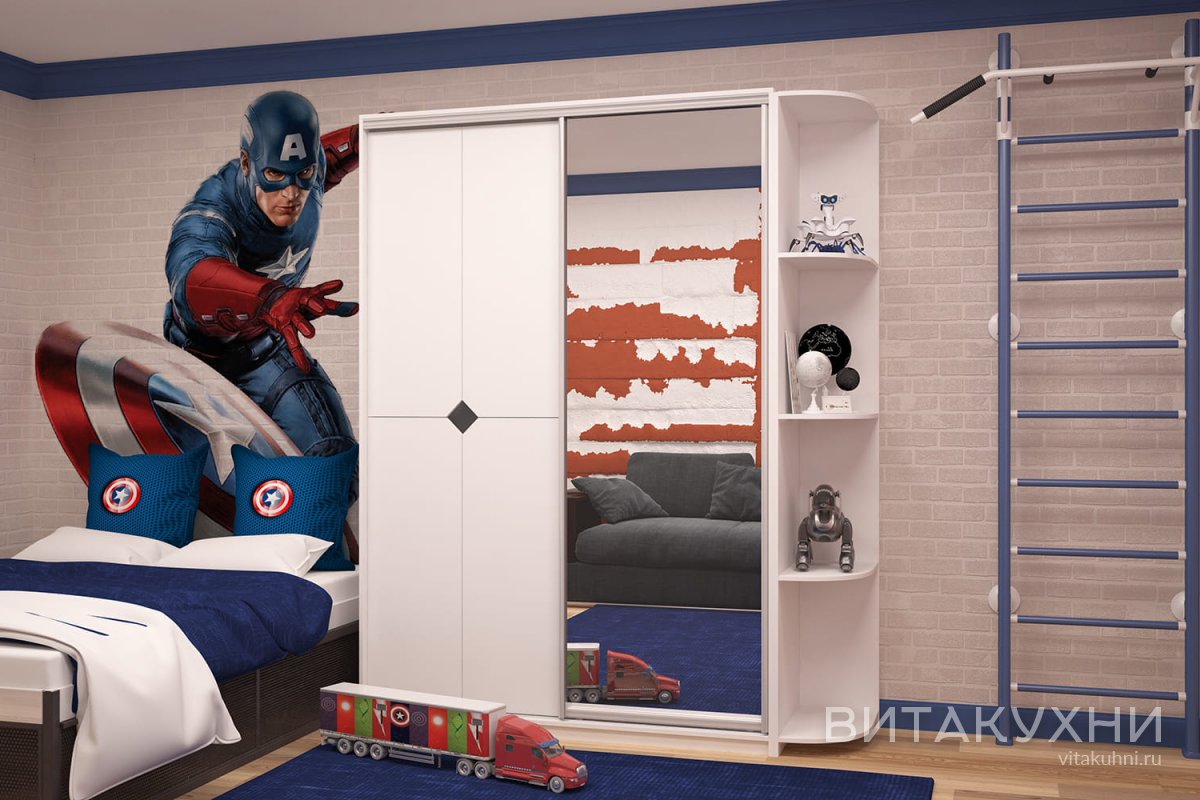 Шкаф-купе Вера Моно с раздвижной и распашными дверцами из МДФ отлично подойдет для детской комнаты. Благодаря использованию прочного алюминиевого профиля в комбинации с зеркалом создается эффект легкости и простоты. Угловой элемент добавит изюминки. Внутреннее наполнение может быть скорректировано по желанию. Заказать Шкаф-купе Вера Моно можно в нашем интернет-магазине по привлекательной цене.