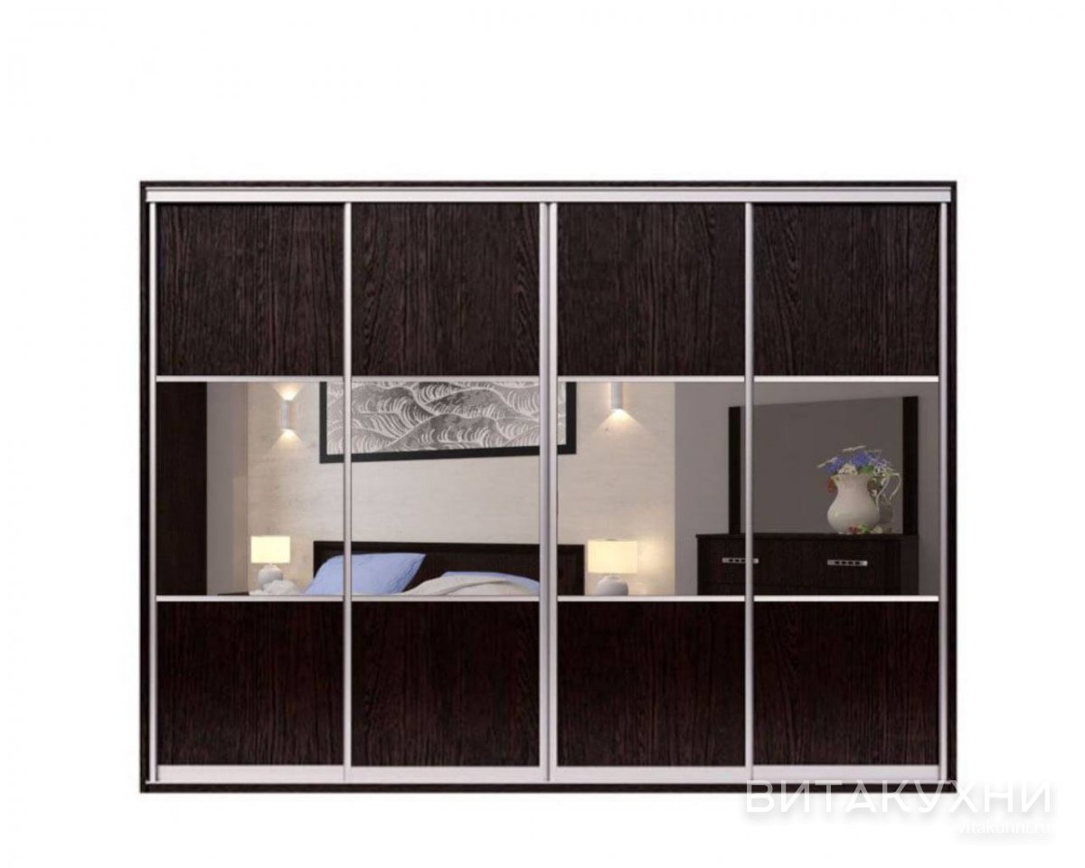 Шкаф-купе Зевс Комби - идеальное выбор для тех, кто ищет стильный и функциональный шкаф для своего дома или офиса. Этот шкаф имеет четыре раздвижные двери, что позволяет экономить пространство и обеспечивает удобный доступ к содержимому. ЛДСП, из которого изготовлен шкаф, обладает высокой прочностью и долговечностью, а также устойчивостью к повреждениям. Вставки из зеркала на дверях шкафа не только украшают его, но и добавляют света и пространства в помещение. Купить Шкаф-купе Зевс Комби приглашаем в наш интернет магазин.