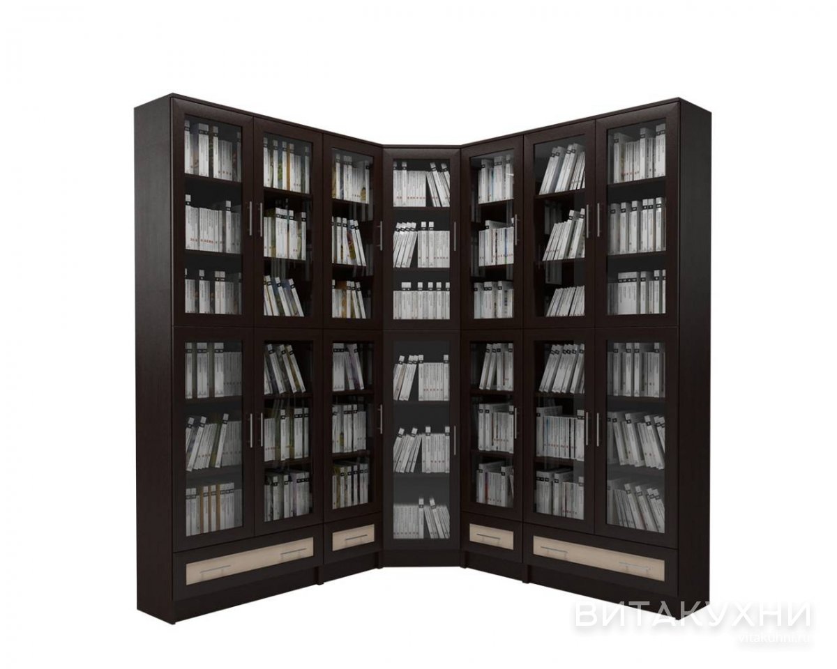 Книжный угловой шкаф Млайн 32 гармонично сочетает надежность традиционной конструкции и классический дизайн. Угловая конструкция делает библиотеку еще более функциональной и вместительной. Четыре просторных ящика в основании позволят вместить еще больше предметов быта. Стеклянные дверцы позволяют видеть содержимое шкафа и обеспечивают легкий доступ к нужным вещам. Купить Книжный угловой шкаф Млайн 32 можно в нашем интернет-магазине.