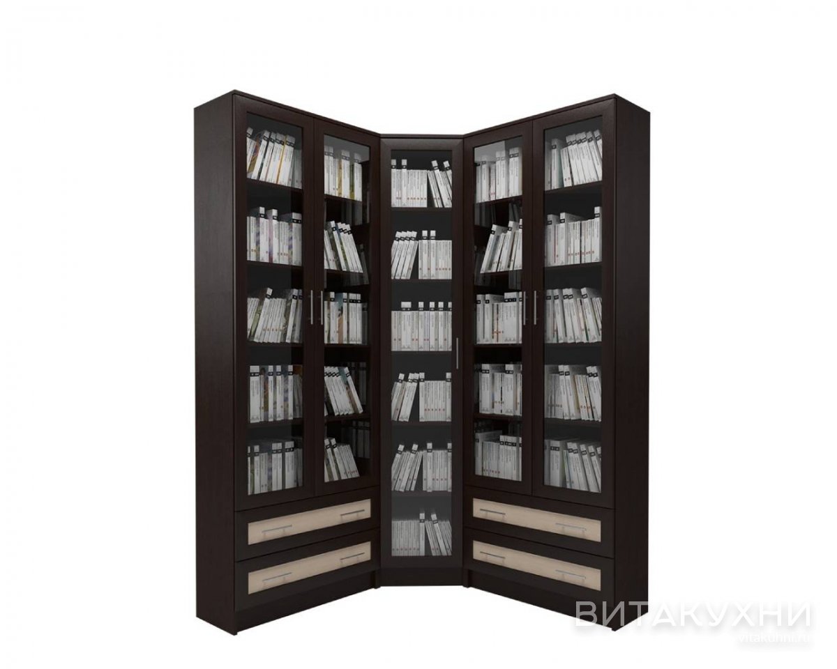 Книжный угловой шкаф Млайн 39 выполнен в классическом стиле и поможет оборудовать эффектную и функциональную гостиную. Благодаря его конфигурации, Вы сможете наилучшим способом оптимизировать пространство. Модель оборудована угловым шкафом с распашной застекленной дверцей и двумя прямыми комбинированными модулями с выдвижными ящиками для мелочей в основании. Заказать Книжный угловой шкаф Млайн 39 приходите в наш магазин.