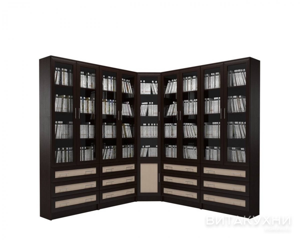 Венге, Книжные, Большие, Классические, С ящиками