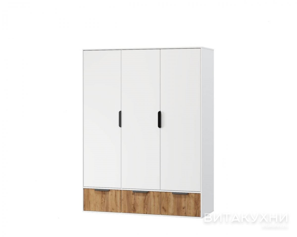 Шкаф распашной Леванте-3 очень гармонично впишется в интерьер за счет небольших габаритов и сделает комнату еще более привлекательной и интересной. Сочетание белого и древесного цвета и фрезеровки делает этот шкаф элегантным и изысканным. С тремя распашными дверьми и ящиками, он предлагает удобное хранение для вашей одежды, посуды или других предметов. Изготовлен из прочных материалов - ЛДСП и МДФ, обеспечивая долгий срок службы. Купить Шкаф распашной Леванте-3 по доступной цене приглашаем в наш интернет-магазин.