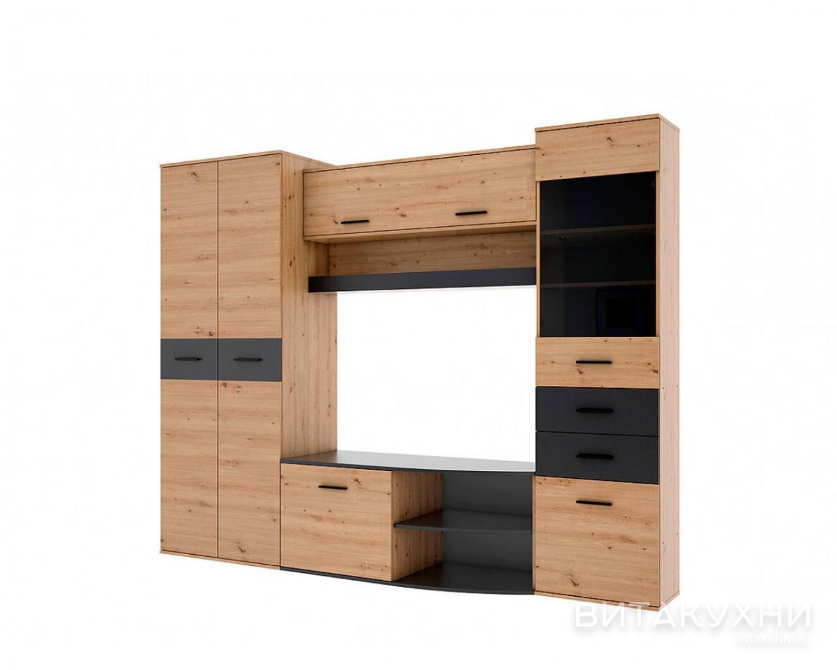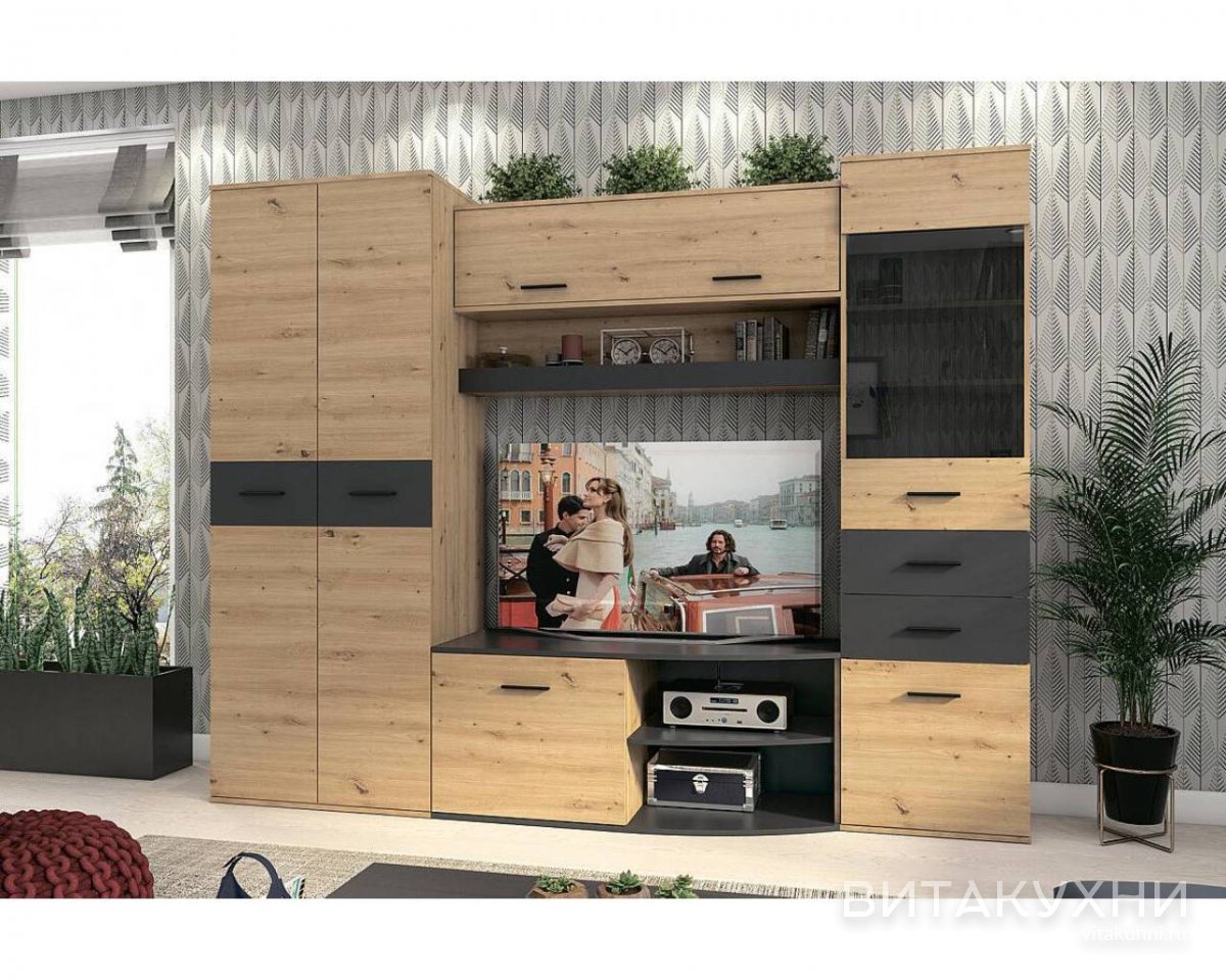 Стенка для гостиной Амалия 4 идеально подойдет для тех, кто желает создать уютный и функциональный интерьер, не перегружая его лишними деталями. Основные элементы модульной стенки включают шкаф, пенал, тумбу под телевизор и подвесную полку, каждый из которых оснащен графитовыми элементами. Универсальность модульной стенки позволяет использовать ее в различных интерьерах - от классических до современных. Купить Стенку для гостиной Амалия 4 по выгодной цене приглашаем в наш интернет-магазин.