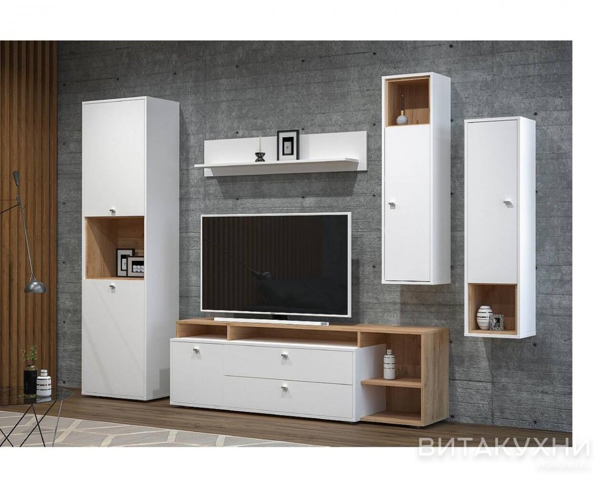 Стенка для гостиной Бэль-01 прекрасно подойдет для тех, кто ценит уют и функциональность в своем интерьере. Основным элементом стенки является тумба под тв, которая имеет достаточно места для размещения вашего телевизора и сопутствующих аксессуаров. Также в состав стенки входят пенал для хранения одежды и других вещей, полка для размещения книг, сувениров или фотографий и два подвесных элемента с открытыми полками для хранения различных мелочей. Купить Стенку для гостиной Бэль-01 по выгодной цене можно в нашем интернет-магазине.