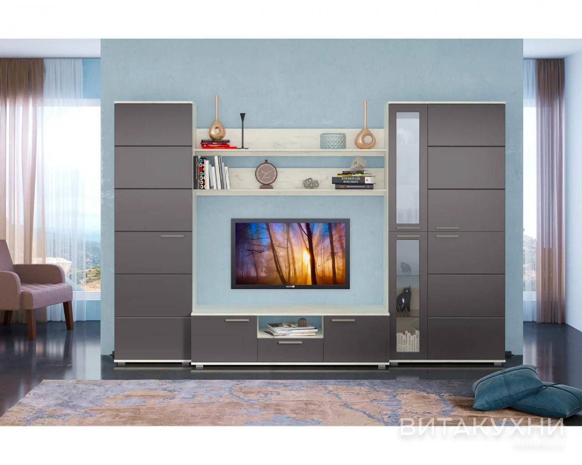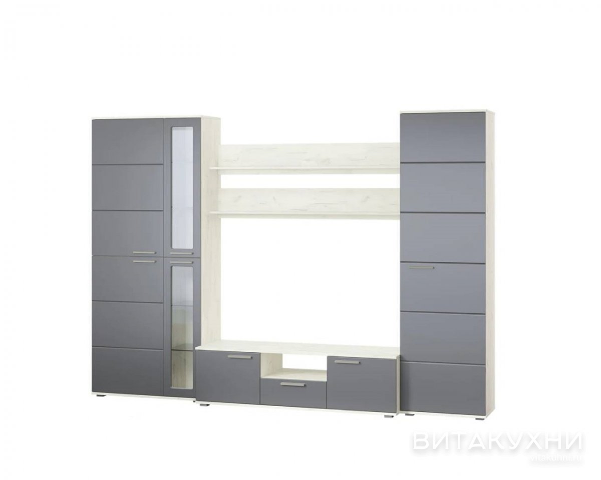 Представляем Вашему вниманию стильную и изысканную Стенку для гостиной Интеро с горизонтальной фрезеровкой, выполненную в актуальном графитовом цвете. Фрезеровка на поверхности фасадов придает стенке особый шарм и оригинальность, а графитовый цвет делает ее ультрамодной и современной. Тумба под ТВ позволит разместить телевизор любой диагонали, а полки и пеналы станут идеальным местом для хранения книг, фотоальбомов, сувениров и прочих вещей. Продуманный дизайн и высокое качество исполнения делают эту модель идеальным выбором для любителей стильных и функциональных решений. Купить Стенку для гостиной Интеро приглашаем в наш интернет-магазин.
