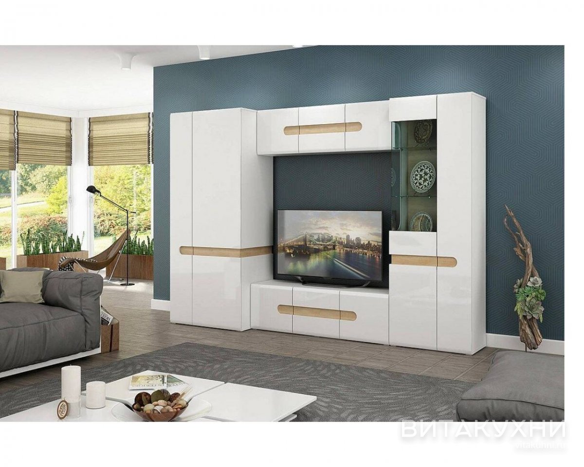 Стенка для гостиной Катания-01 - это современная мебель, которая станет украшением любого интерьера. Центральное место занимает тумба под ТВ на которой можно разместить телевизор. По бокам расположены два вместительных шкафа для одежды и множество полок для книг, сувениров и фотографий. Подвесная антресоль разместит множество вещей, которыми вы не пользуетесь ежедневно. Древесные вставки придают мебели теплоту, уют и подчеркивают ее классический стиль. Купить Стенку для гостиной Катания-01 по выгодной цене приглашаем в наш интернет-магазин.