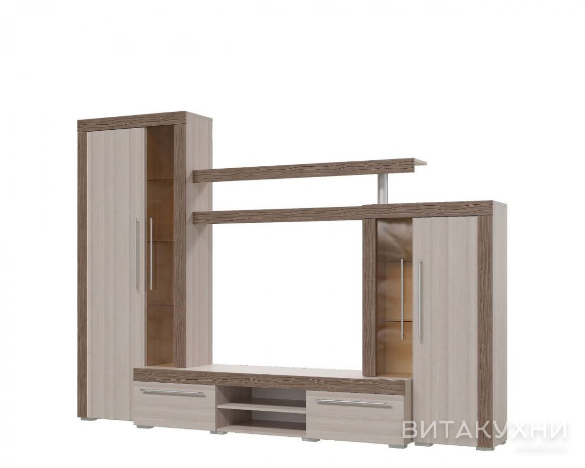 Стенка для гостиной Коста 5 станет прекрасным дополнением для любого интерьера и обеспечит удобное хранение ваших вещей. Древесные тона стенки прекрасно сочетаются с большинством цветовых решений интерьера, создавая теплую и уютную атмосферу. Благодаря своим размерам, стенка подойдет для любых помещений - от гостиной до спальни. На полках и в шкафах вы сможете разместить ваши книги, аксессуары, сувениры и другие предметы, которые хотите продемонстрировать. Тумба под ТВ идеально подходит для размещения телевизора, а также для хранения мультимедийных устройств и аксессуаров. Купить Стенку для гостиной Коста 5 приглашавшем в наш интернет-магазин.