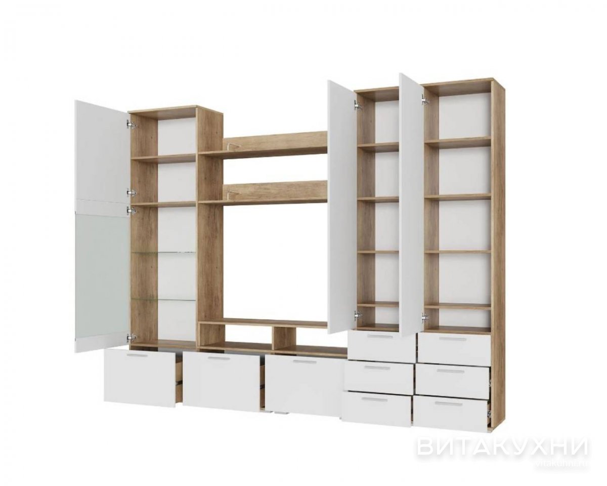 Стенка для гостиной Лейла - это прекрасное решение для тех, кто ищет стильную и функциональную мебель для гостиной комнаты. Сочетание белого цвета и больших размеров делает эту стенку идеальным выбором для современных интерьеров. С ящиками и шкафом, она предоставляет много места для хранения и укладки вещей. Изготовлена из ЛДСП, она прослужит вам долгие годы. Стильная, удобная и просторная - стенка Лейла станет отличным дополнением к вашему дому.
