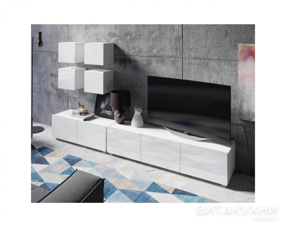 Современные, Модульные, Белые, Глянец, С ящиками
